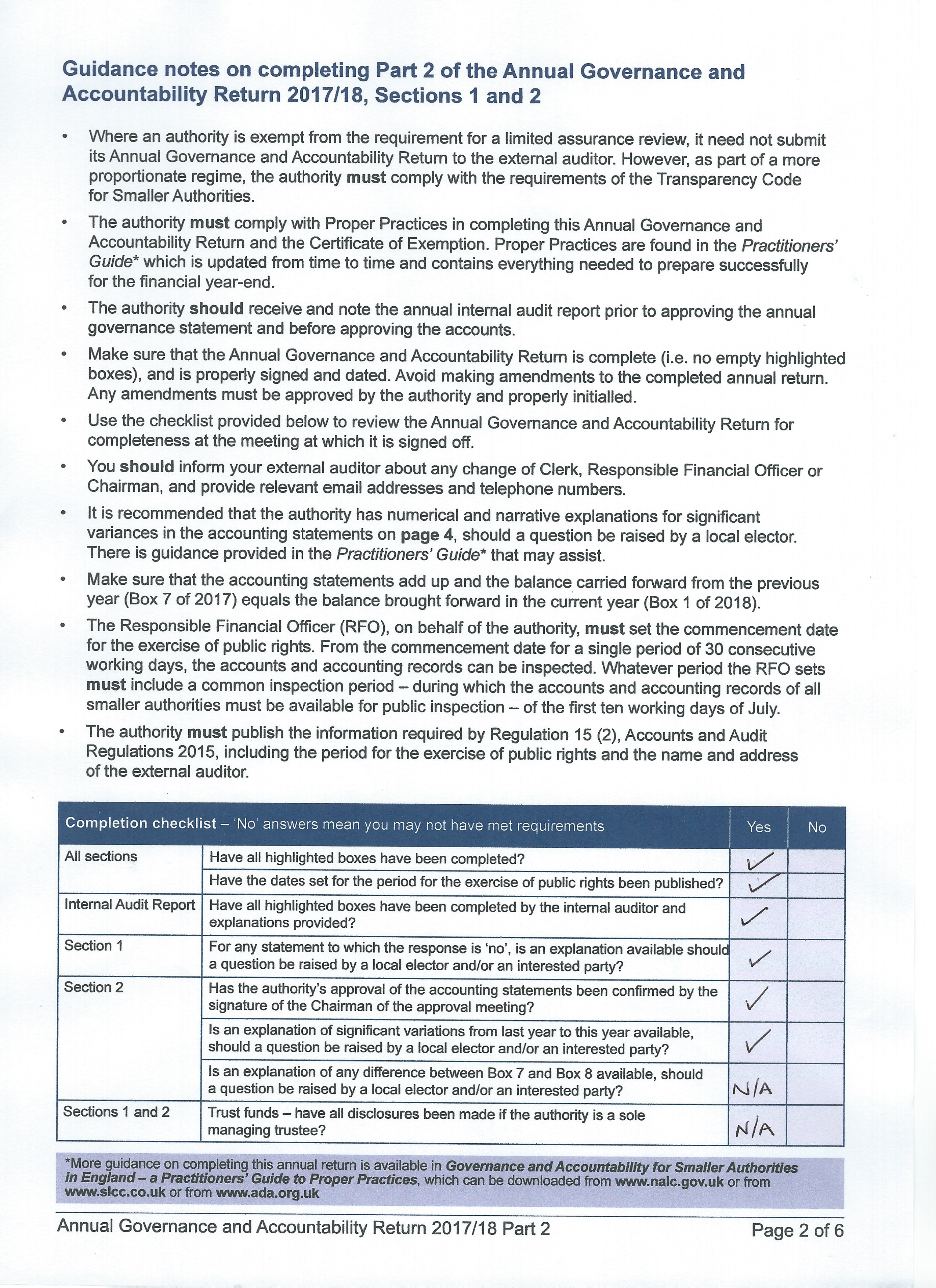 AGAR Part 2 – Page 2 of 6 – Guidance Notes