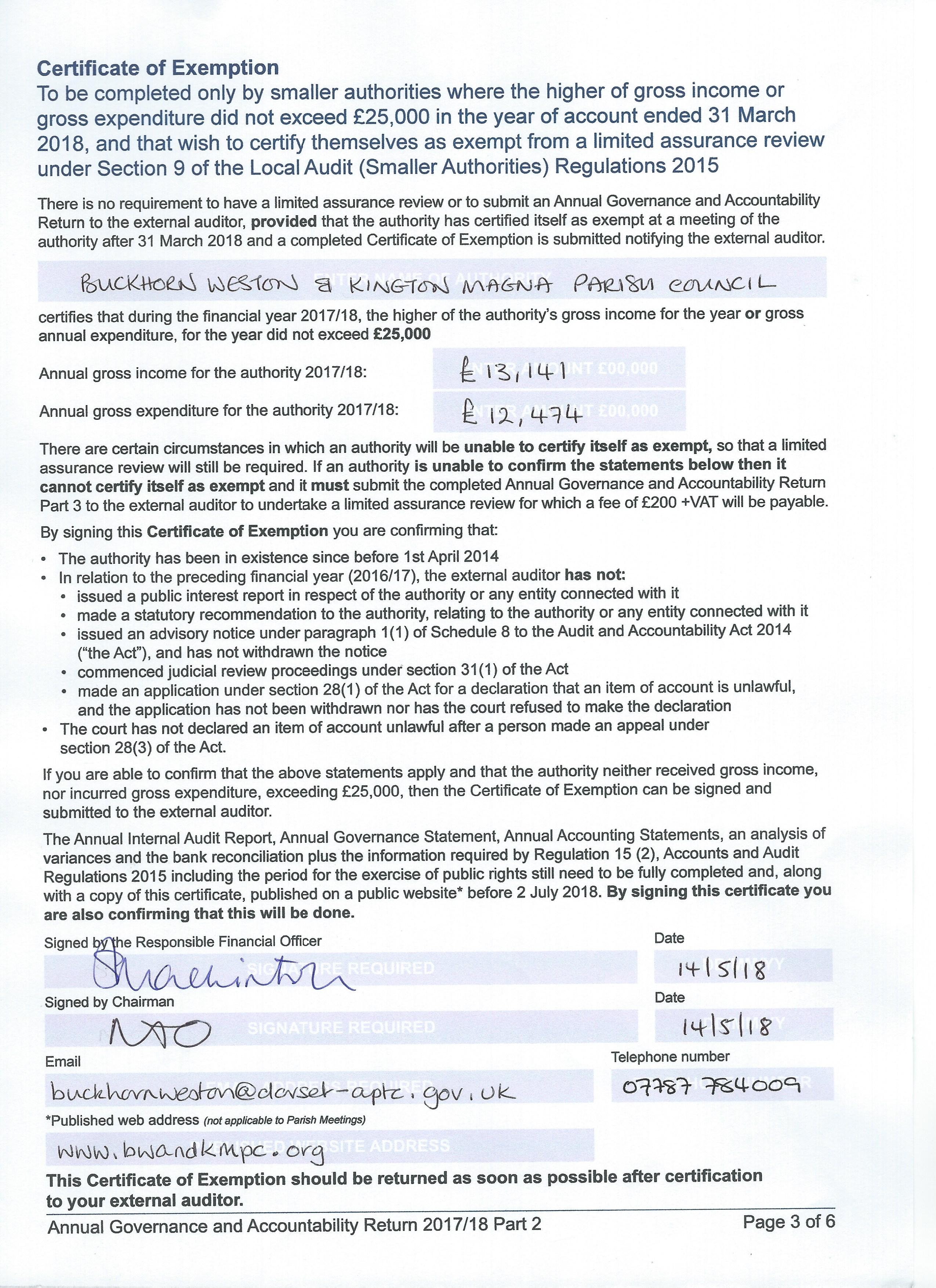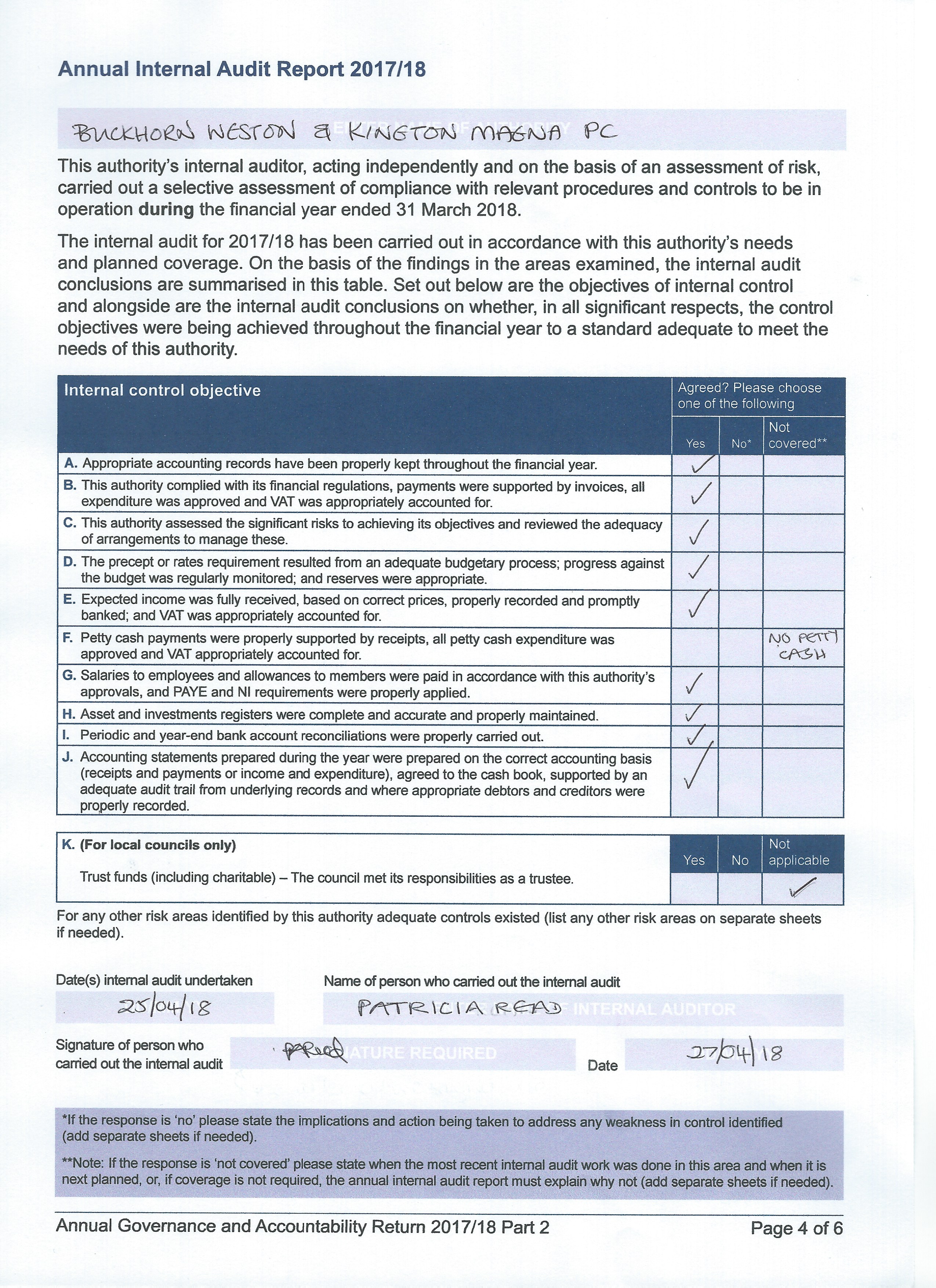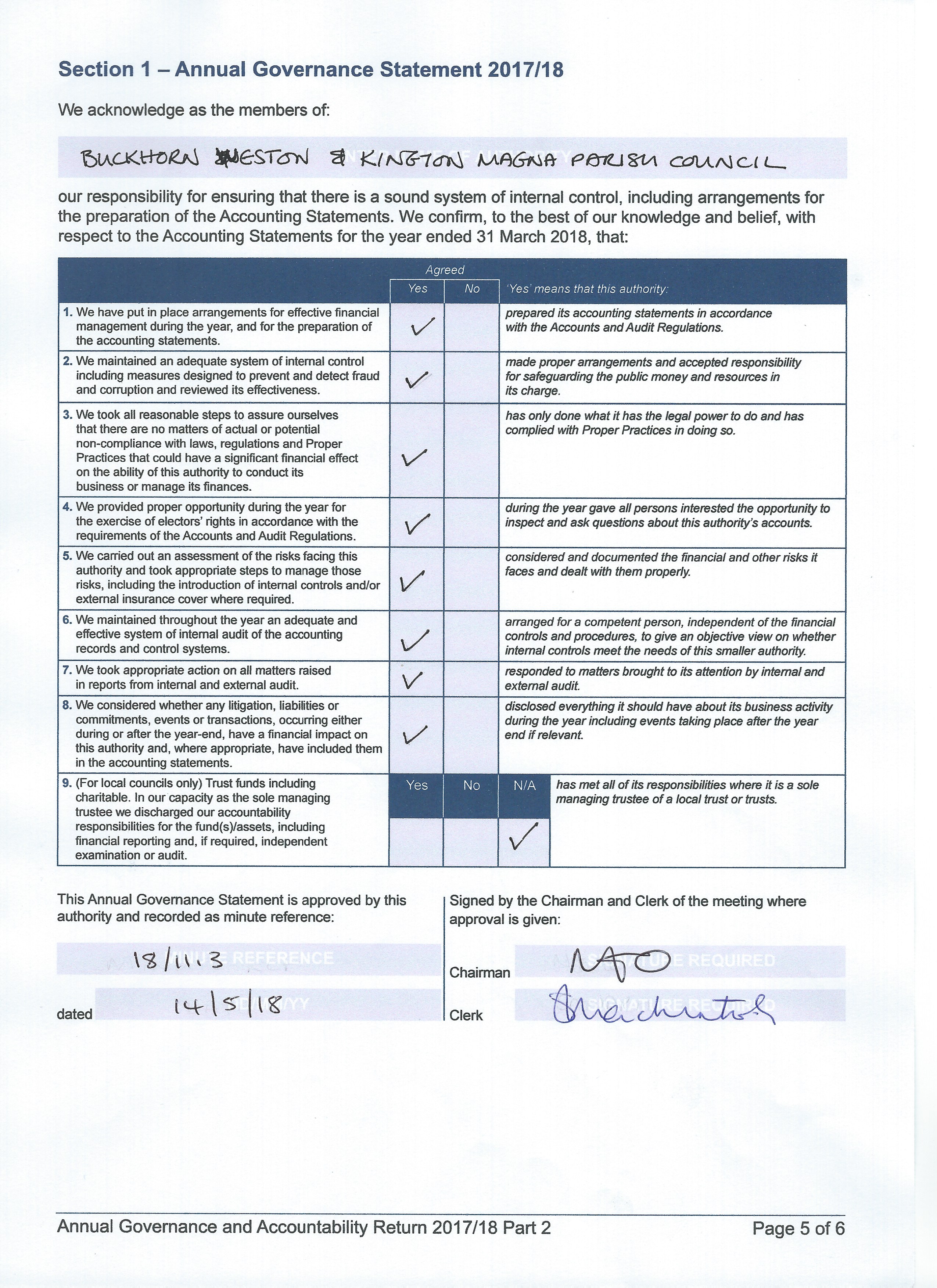 AGAR Part 2 – Page 5 of 6 – Annual Governance Statement 2017-18