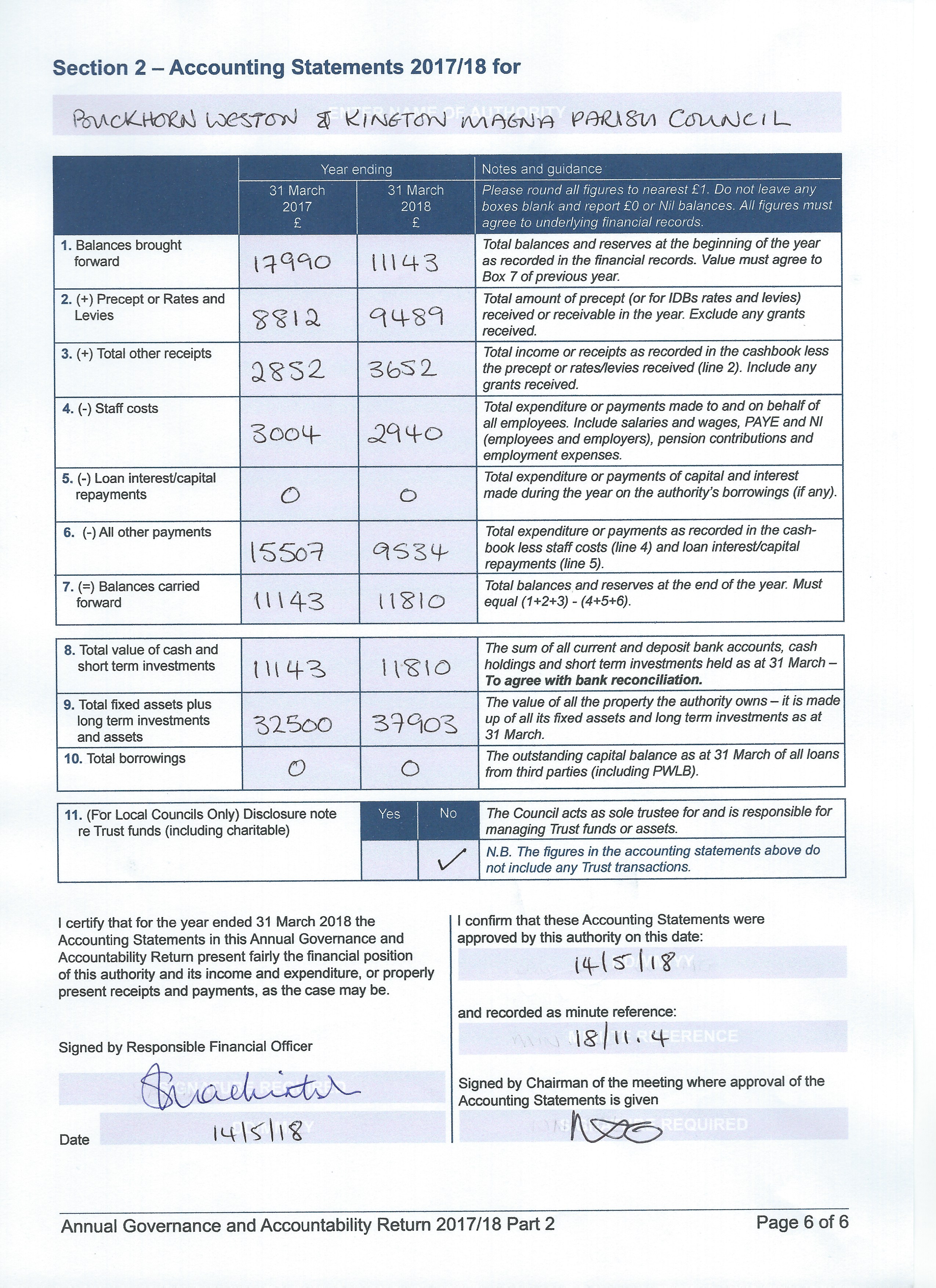 AGAR Part 2 – Page 6 of 6 – Accounting Statements 2017-18